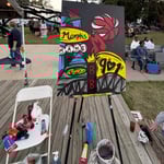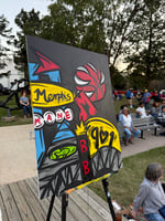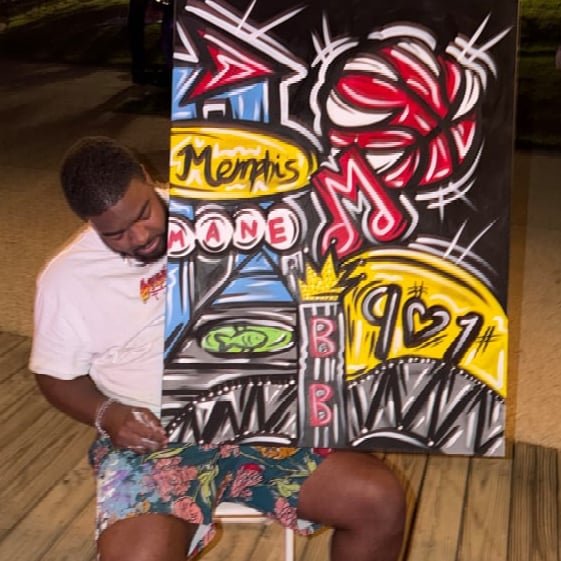 As seen left to right: The Lorriane Motel, Memphis Grizzlies logo, Bass Pro Shop Pyramid, B.B. King, Memphis bridge, Redbirds music logo, and Choose 901 logo.
