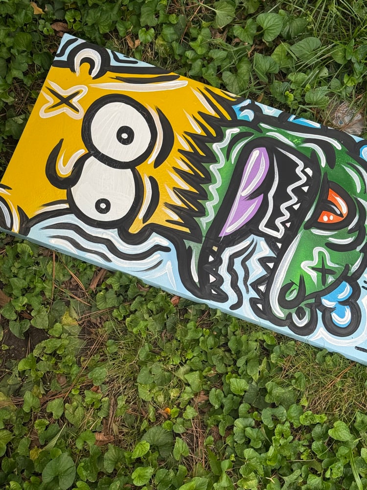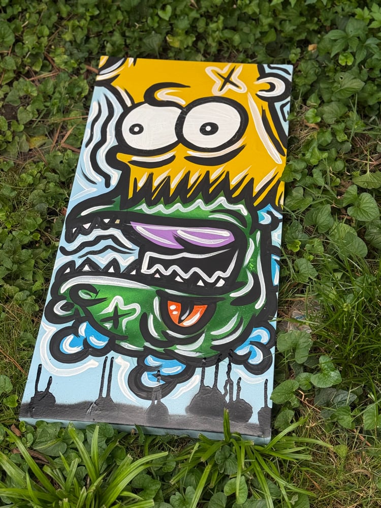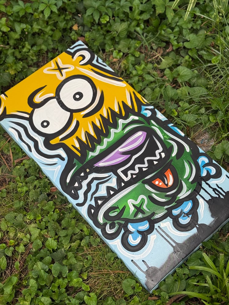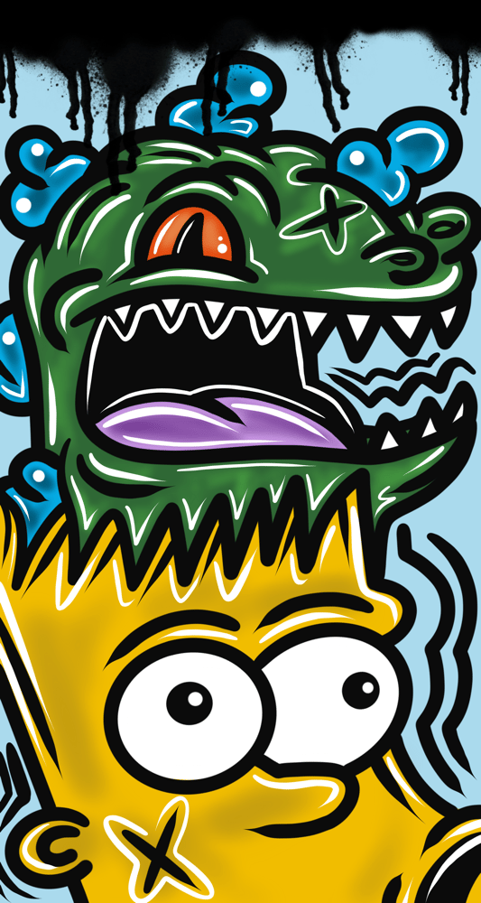 ReptBar Simpson is a 20x32 acrylic and spray paint on canvas.